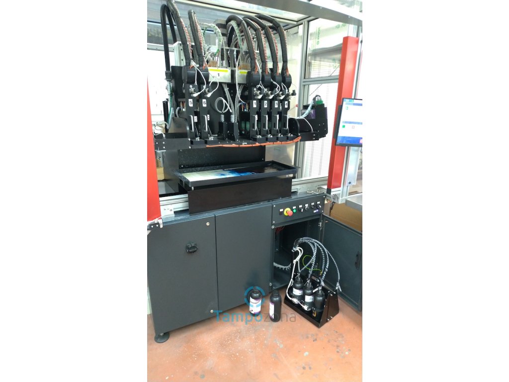 - Kromě CMYK je také možné použít jednu nebo dvě tiskové hlavy jako bílý podklad, aby se dosáhlo optimálních výsledků na jakémkoliv barevném povrchu. Při barevném tisku lze tiskovou hlavu použít i pro aplikaci primeru nebo laku jako další ochranu potištěné barvy.