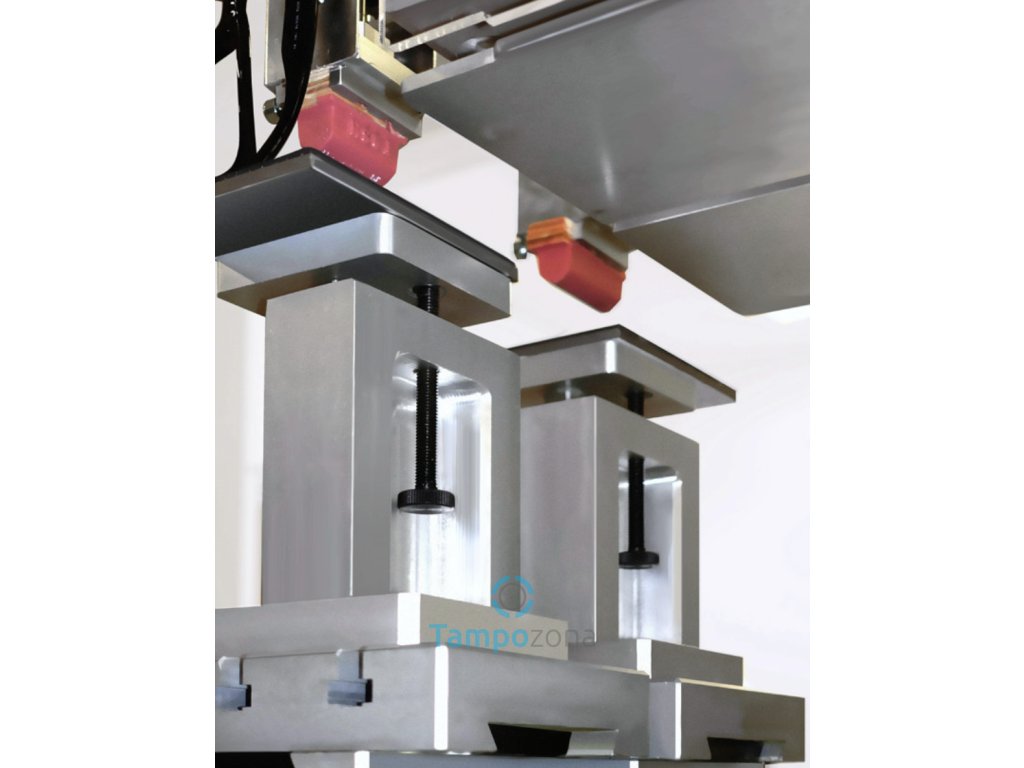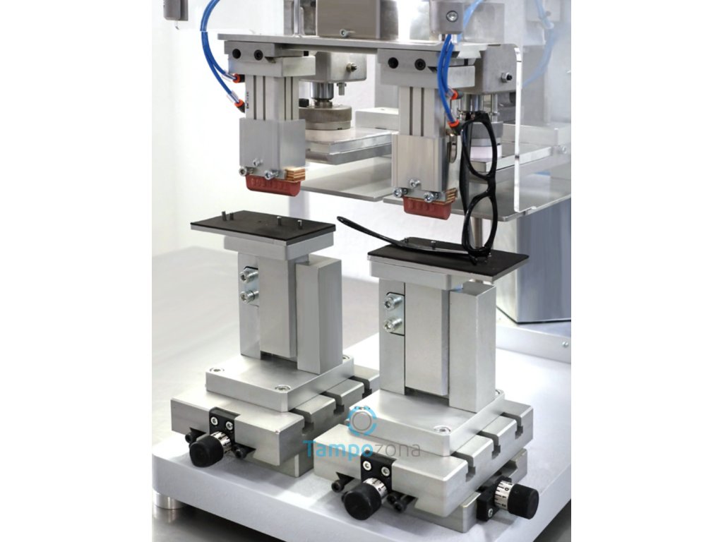 Plně elektrický tamponový stroj s číslicovým řízením. Tato speciální úprava stroje umožnuje možnost tisku pravých a levých stranic brýlí jednotlivě nebo tisk pravých a levých stranic brýlí současně a to pomocí časování prodlevy mezi jednotlivými tisky. Tiskové tampony jsou umístěny na dvou zařízeních s nezávislým zdvihem dolů, aby bylo možné řídit nabrání jednotlivých motivů z klišé. Polohování přípravků pro obě strany brýlí je jednoduché a rychlé díky úplné nezávislosti a nastavitelnosti os x, y, r, z.