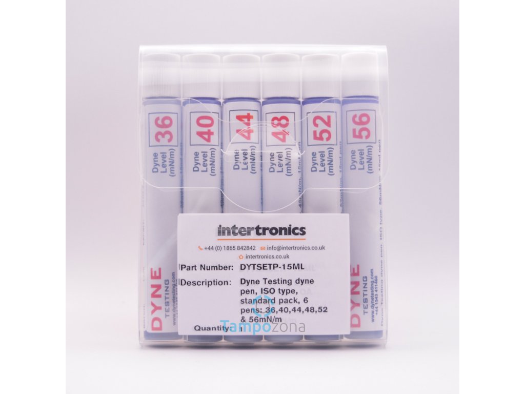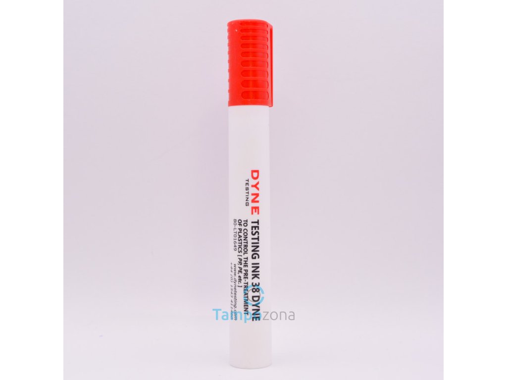 - jednoduchý test jestli byl materiál předupraven na hodnotu 38 mN/m (Dynes/cm) fialová s vysokou viditelností