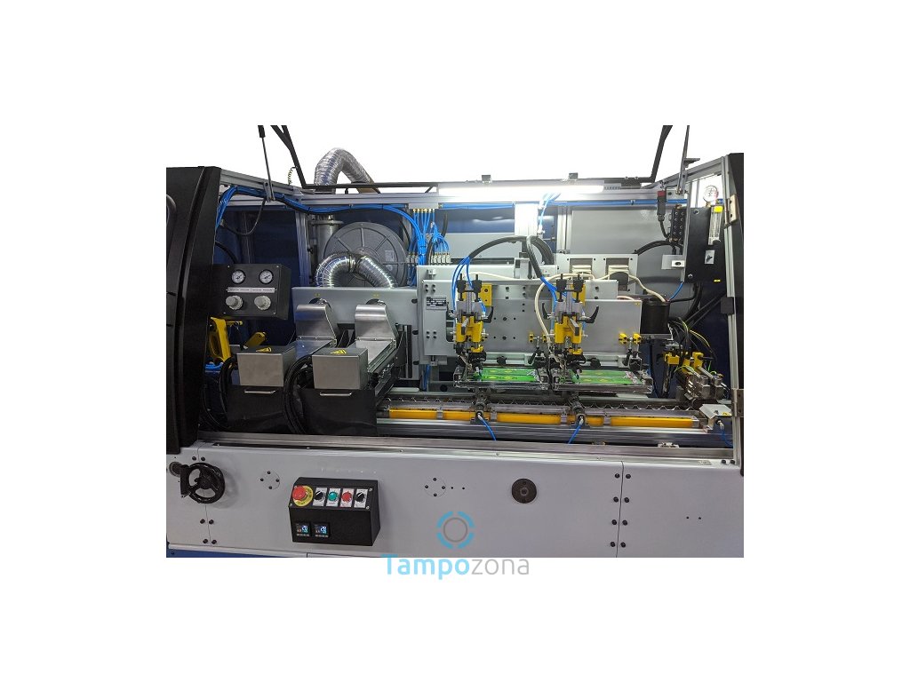 X-FL Double Production je automatický sítotiskový stroj na válcové láhve, určený pro výrobu až 8 000 ks/hodinu. Je vybaven dvojitým systémem "pick and place", 2 tiskovými hlavami a 2 vytvrzovacími jednotkami na každé stanici. K dispozici je také možnost LED.